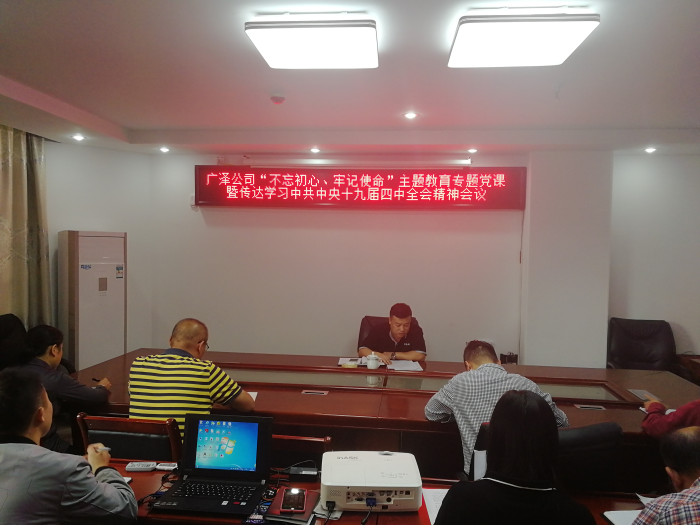 党的十九届四中全会召开后,广泽公司党支部迅速行动,于11月6日召开了党员大会,传达学习《中国共产党第十九届中央委员会第四次全体会议公报》等。支部副书记还上了“不忘初心、牢记使命”主题教育专题党课;开展了“学党史国史,铭初心使命”专题研讨,组织党员干部观看了革命历史题材纪录片《红色传奇》。